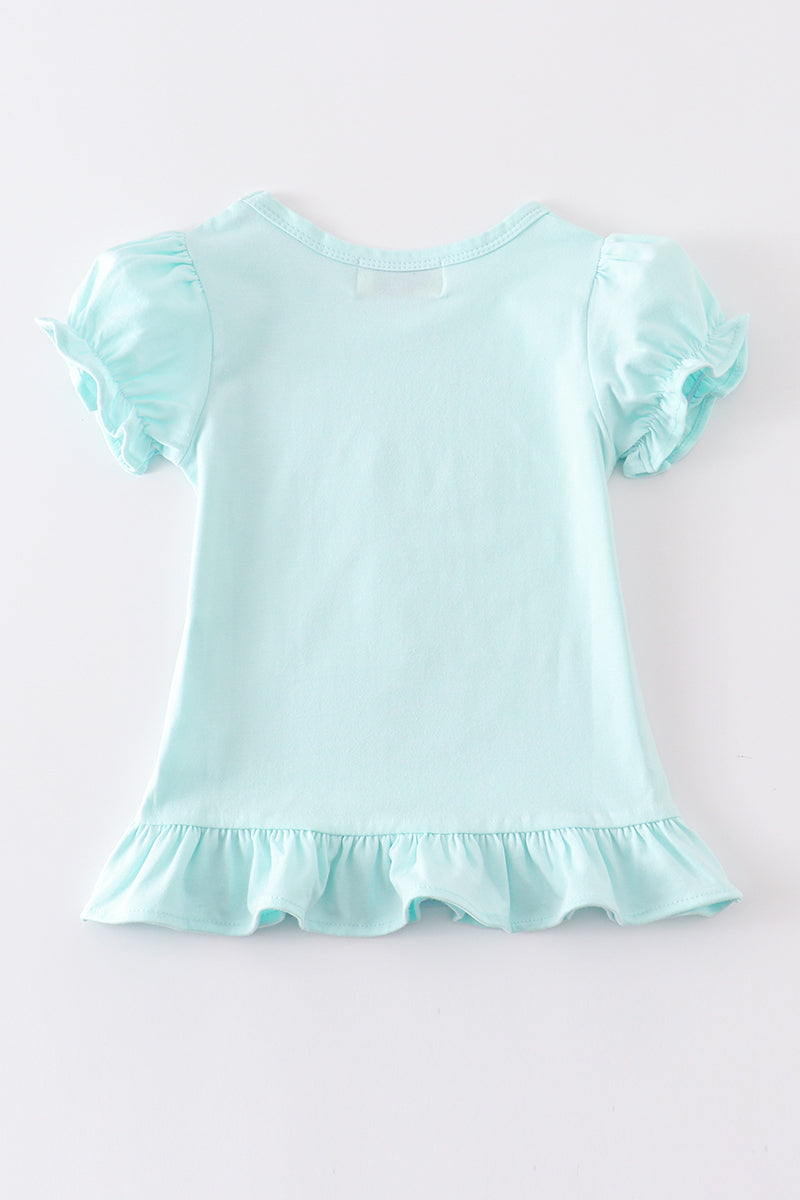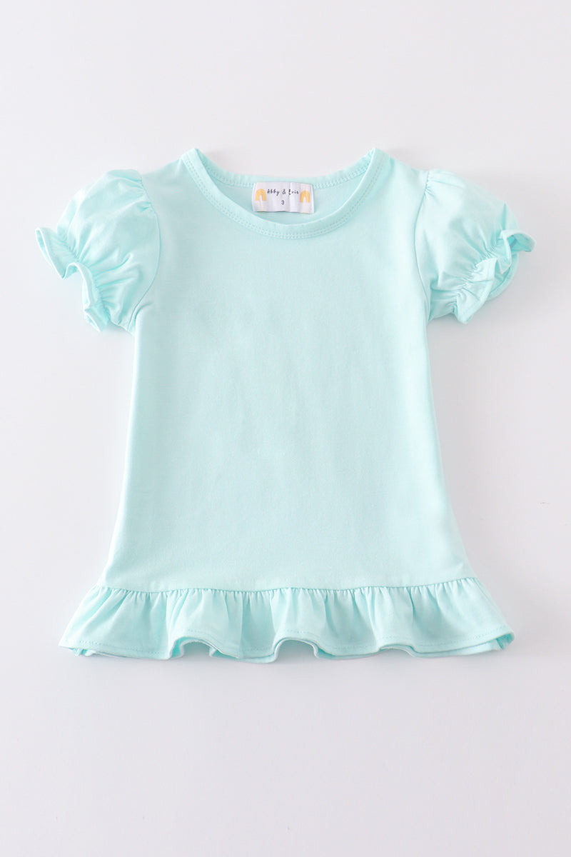 Introducing the Eleanor Mint Basic Ruffle Top for girls! This playful top features a mint color with trendy ruffles - perfect for any fashion-forward little one. Elevate their wardrobe with this quirky and fun addition. (An absolute must-have!)