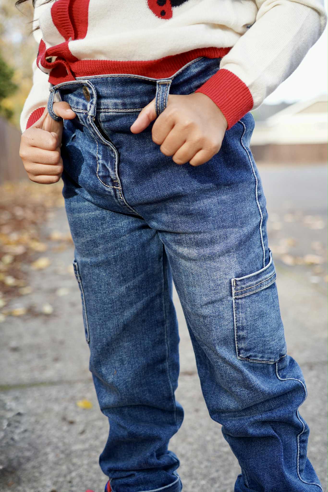 These Go Anywhere Jeans break the mold of ordinary kids denim. Crafted from soft yet durable cotton in a timeless medium dark wash, they feature stylish box pleats at the front and back waist for a unique touch. Easy to slip on thanks to the handy waist snap and zipper fly, plus a secret elastic adjuster tucked inside ensures your perfect fit every time. These aren’t just jeans—they’re your new favorite go-to bottoms!