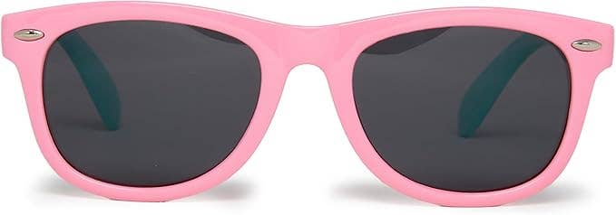 These kids’ sunglasses feature flexible, unbreakable frames that survive even the wildest playtimes without bending out of shape. Equipped with shatterproof polarized lenses, they block UVA, UVB, and blue light to keep little eyes safe and sound. Perfect for parents who want durable, fun, and dependable eye protection for their active toddlers.