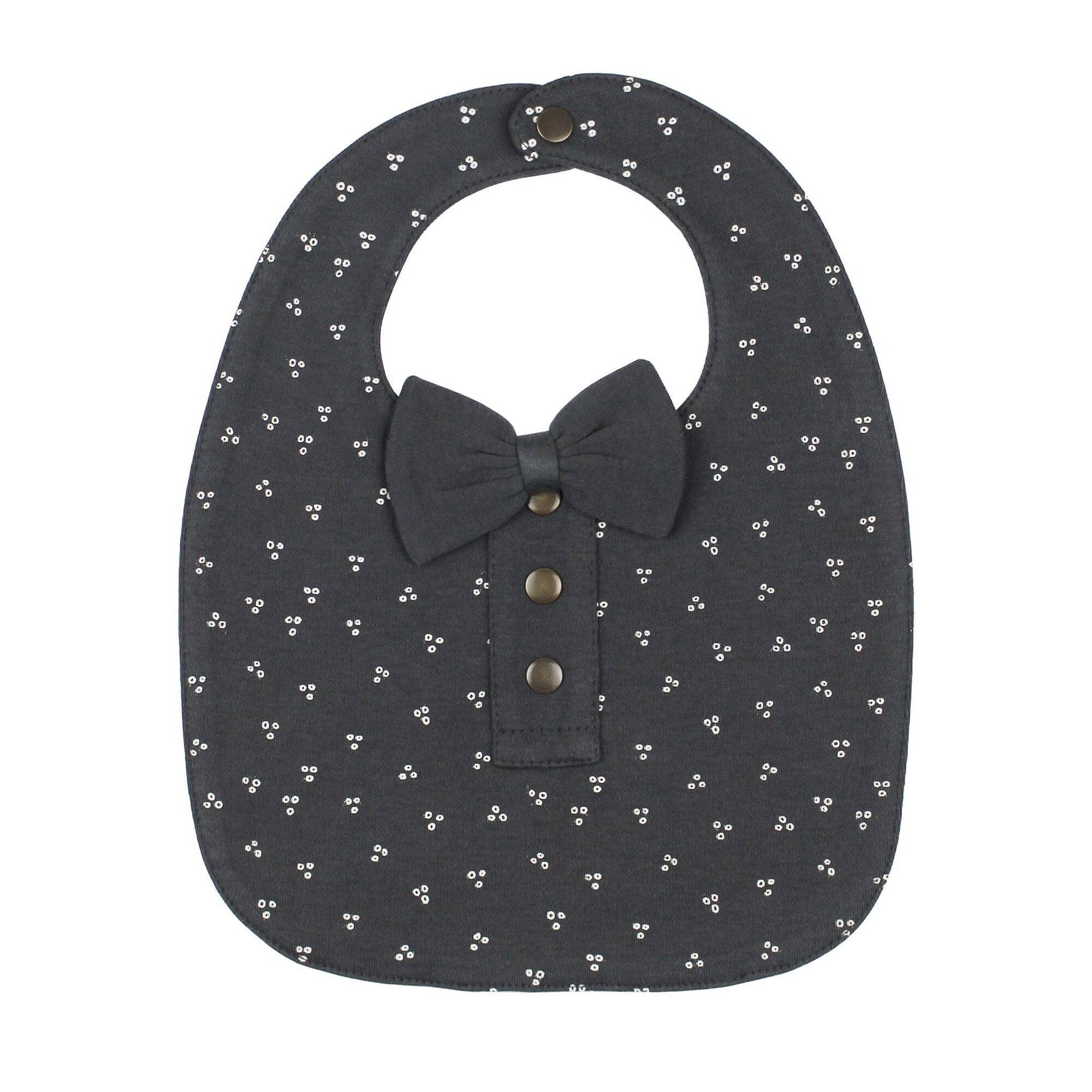 Crafted from GOTS certified organic cotton with a double-layer construction for superior absorbency, this charcoal dot bib combines function with flair. The decorative bowtie and dual snaps add a touch of style, while the single-snap neckline makes dressing effortless. Dyed with azo-free, non-toxic eco-friendly dyes and ethically produced in India, it's the perfect complement to our vintage collection. Machine washable and dryer safe for convenient care.