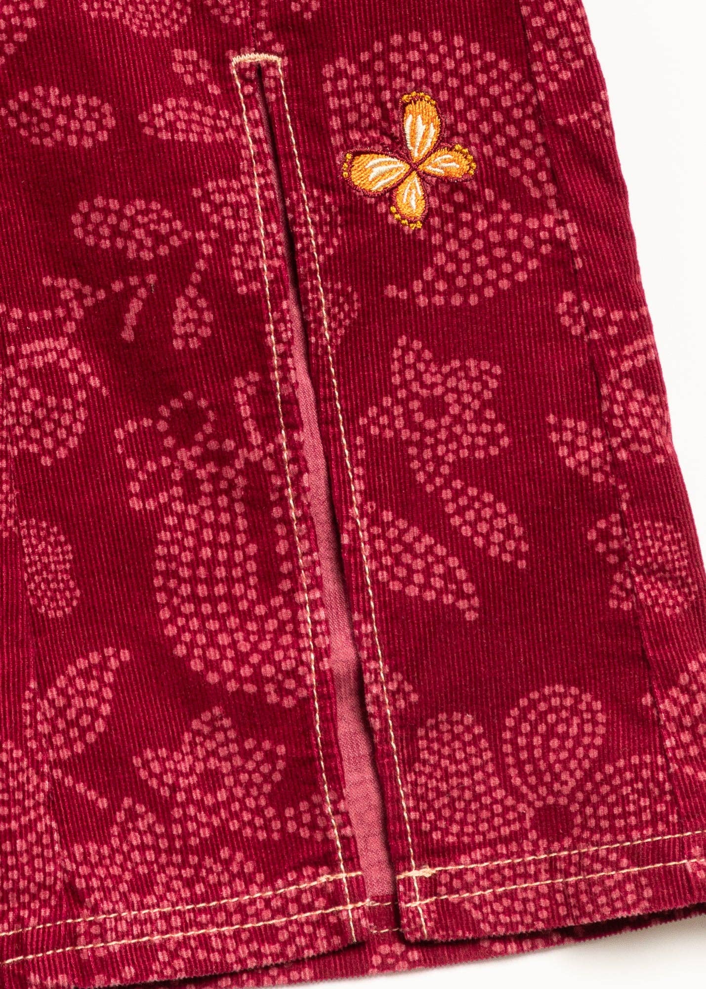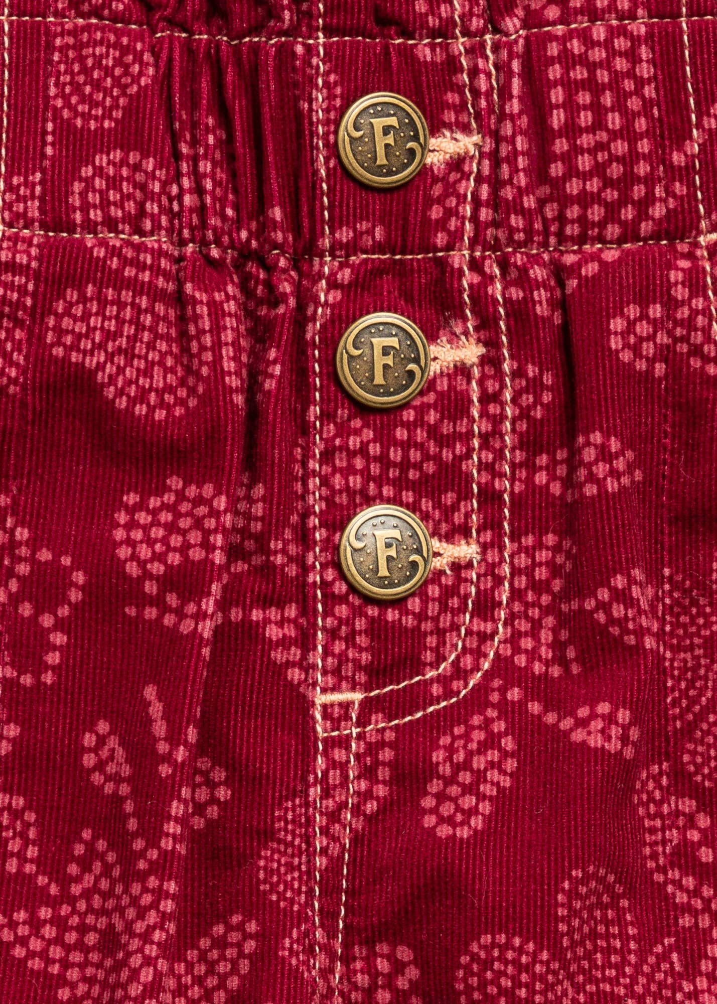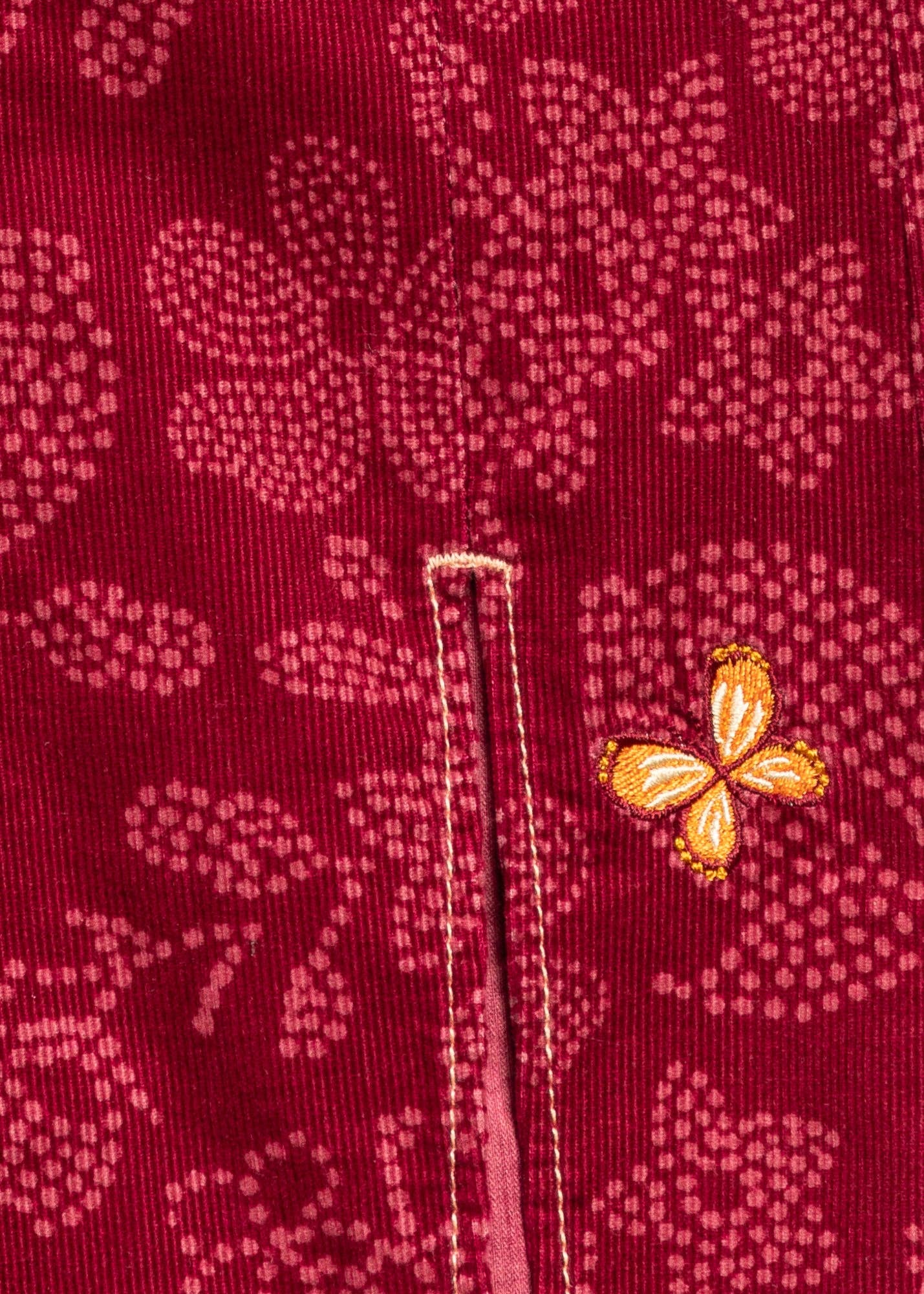 Bursting with good vibes and laid-back charm, the Flower Child Flares capture the autumn spirit in soft corduroy. They boast a cozy elastic paper bag waist and a stylish flare, finished with cute butterfly embroidery along the ankle slit edges.