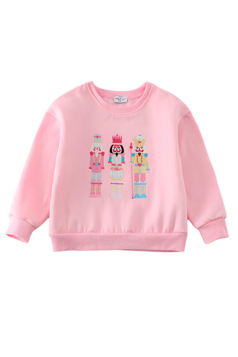 Pink Nutcracker Embroidery Fleece Sweatshirt