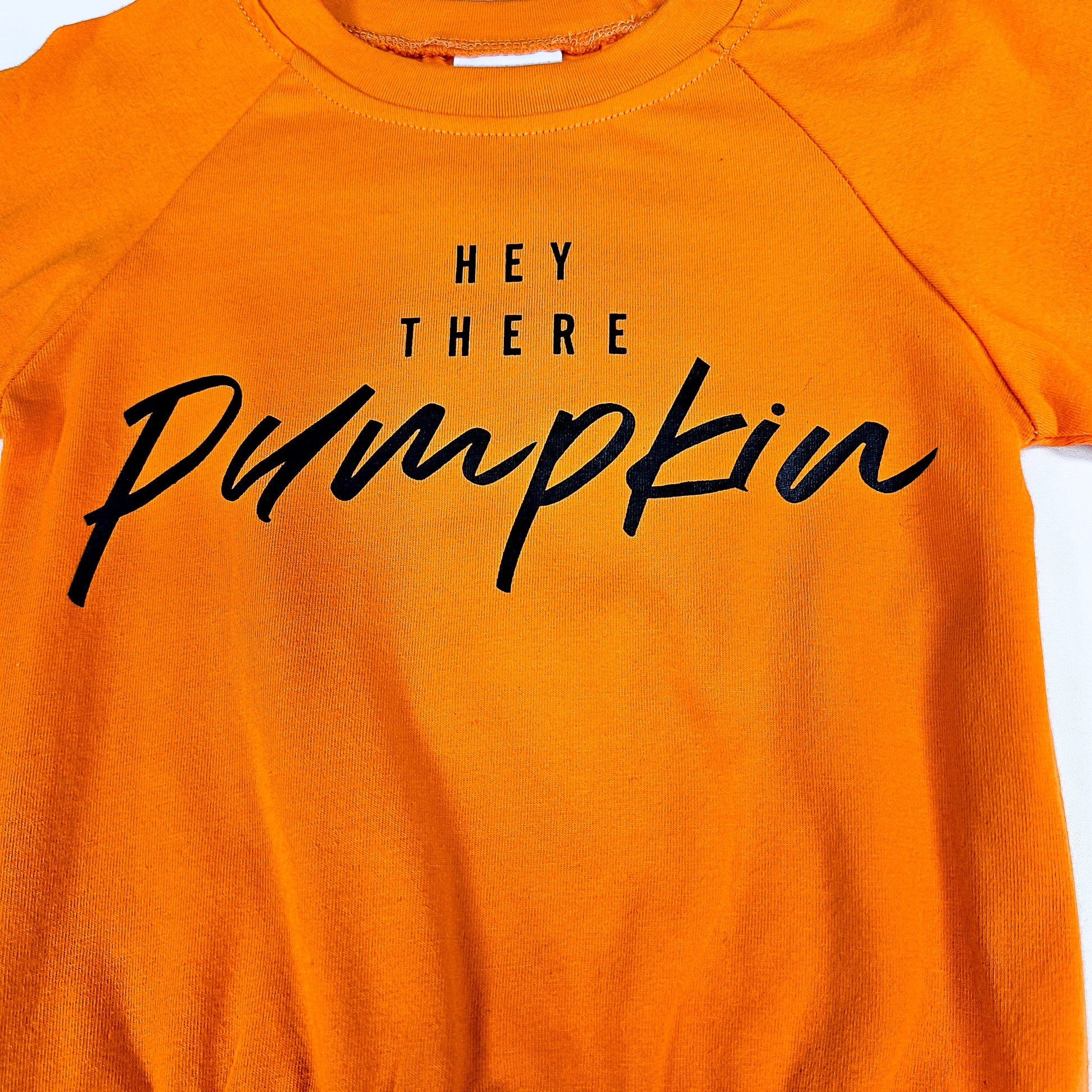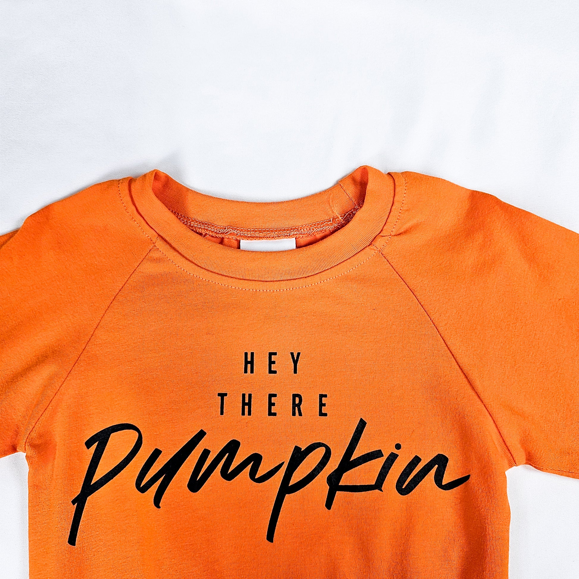 Get your little ones in the spooky spirit with our Hey There Pumpkin Sweatshirt! This adorable orange shirt features a playful "hey there pumpkin" design, perfect for toddlers and kids. Embrace the fall season with this fun and quirky sweatshirt.