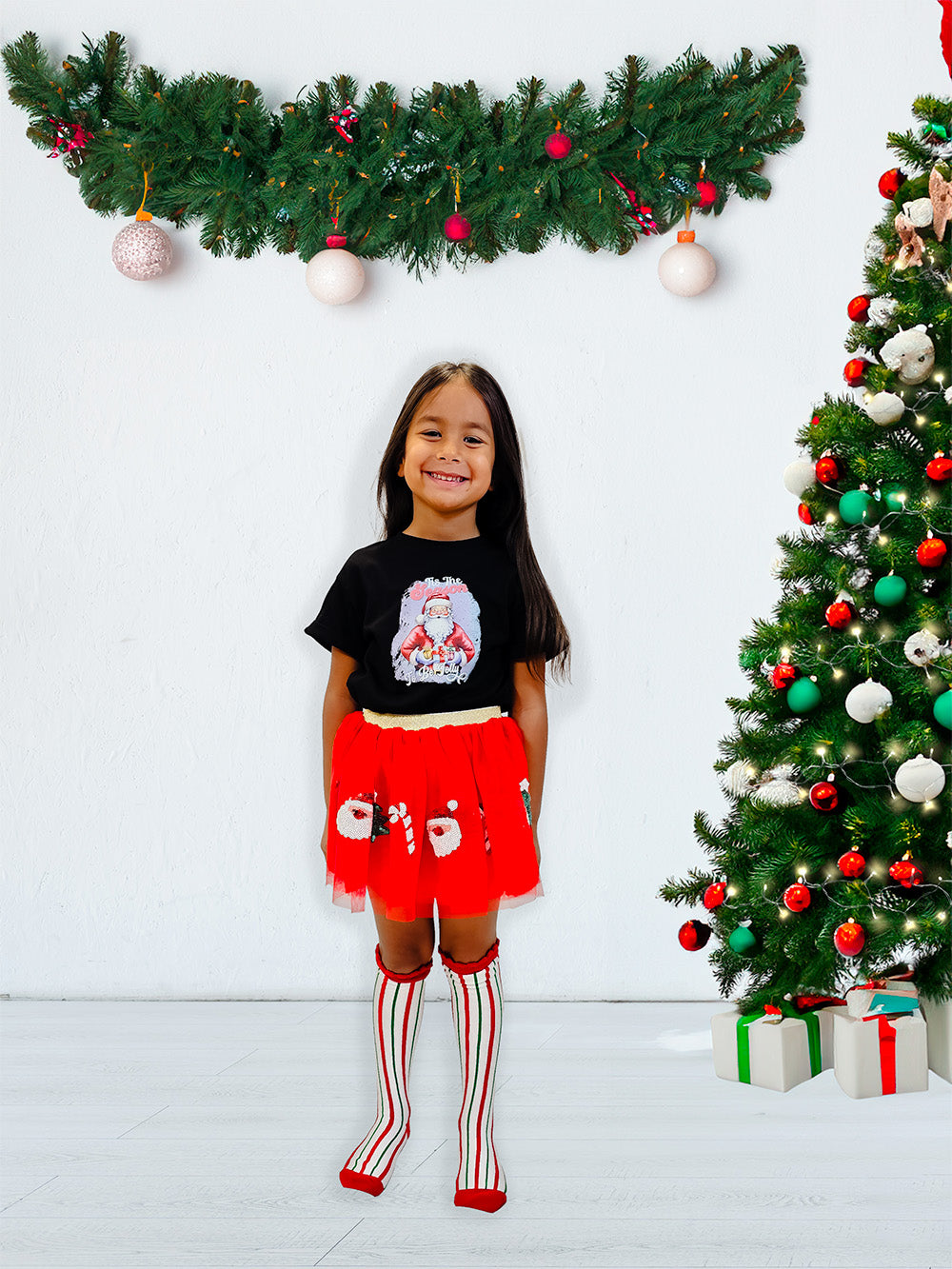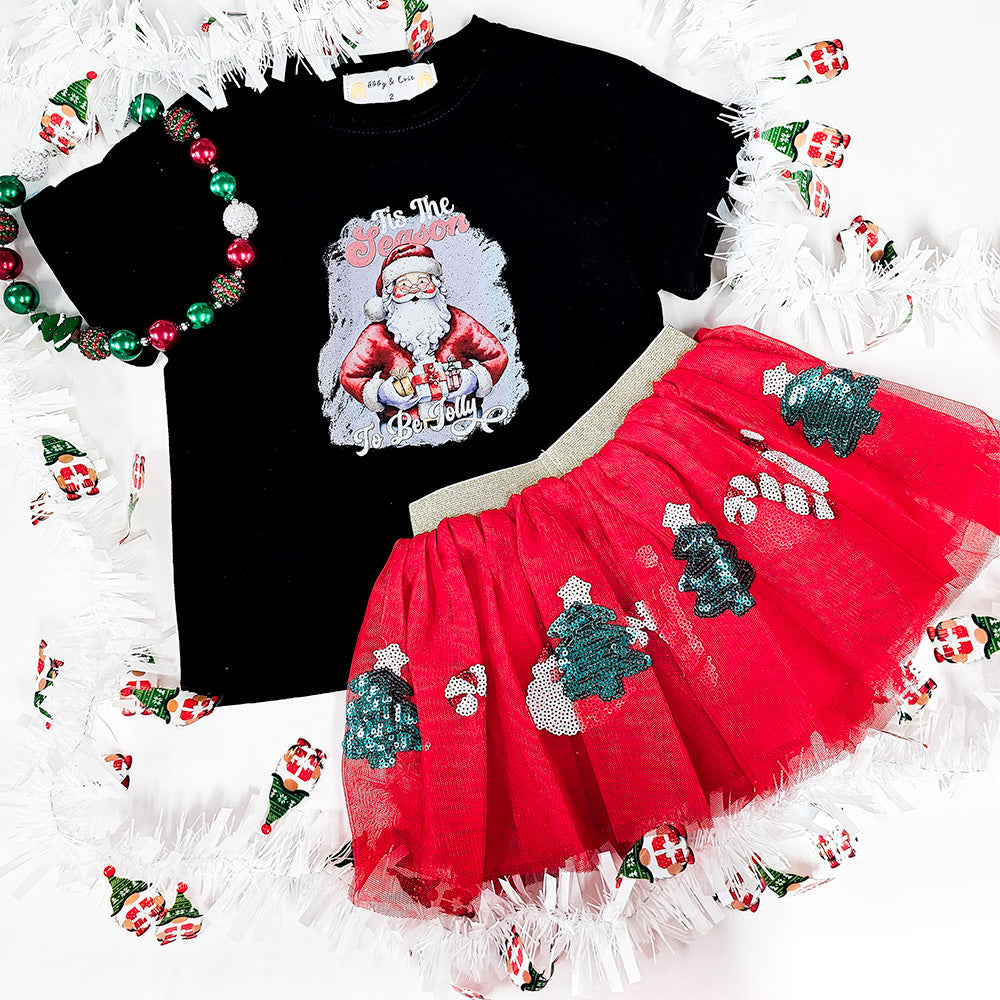 Jingle all the way with this festive black tee featuring Santa's famous catchphrase. Get into the holiday spirit and spread some cheer with this playful Santa Tis The Season shirt. Perfect for any yuletide gathering or as a fun gift for your beloved Christmas fanatics. Ho ho ho, don't miss out!