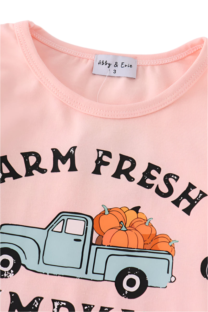 Enjoy a cozy and fun vibe with our fresh pumpkins in a truck tee! This charming top showcases a playful print of farm-fresh pumpkins loaded in a truck, giving you a one-of-a-kind fall look. Ideal for the season, this tee keeps your style pumpkin-perfect. (Pumpkin spice latte sold separately.)