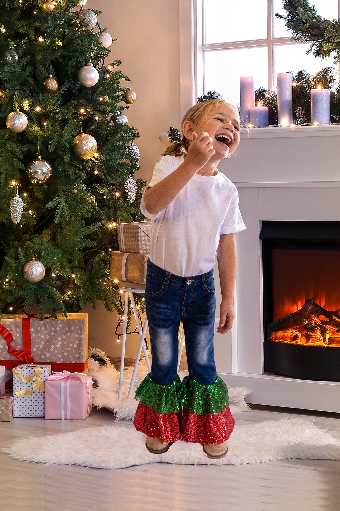 Add some festive flair to your wardrobe with these Willow Christmas Sequin Double Layered Bell Bottoms! The Christmas sequins add a touch of sparkle to the double layered bells, making them perfect for any holiday gathering. Elevate your style this season with these unique and playful pants.
